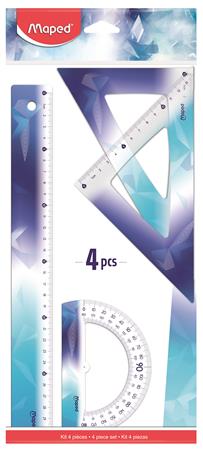 Vonalzókészlet, műanyag, törhetetlen, 4 darabos, MAPED „Arctic jégvilág”