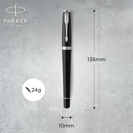 KezdőlapIrodaszerekÍrószerekTöltőtollakTöltőtoll, ezüst színű klip, matt fekete színű tolltest, PARKER "Royal Urban Twist"